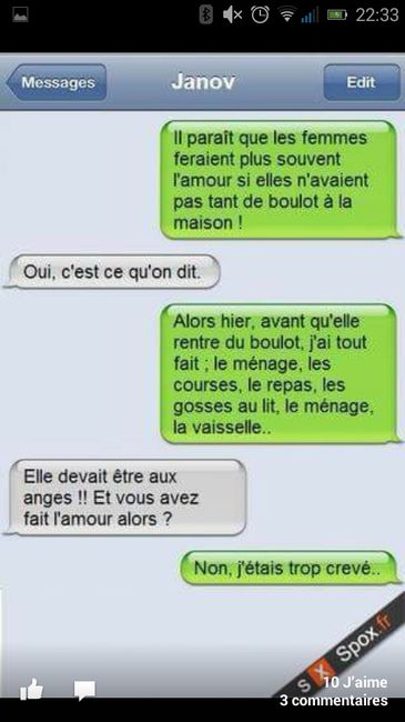 Je vous partage sa je sais que ce n'est pas pour parler mariage mais c'est un brin de fantaisie pour sourire après des journée stressante a penser a l'organisation le travail etc.... ^^ bonne continuation a toutes les filles