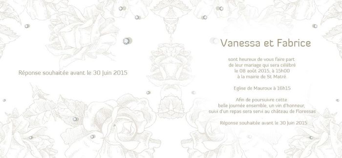 Salut à tous!! Par curisosité je me dermandais quel faire part avez vous choisi (photo)??? et quand on dit vos invités pour ceux et celles qui les ont déjà envoyés? Nous avons repéré un modele qui nous plait, simple et moderne...