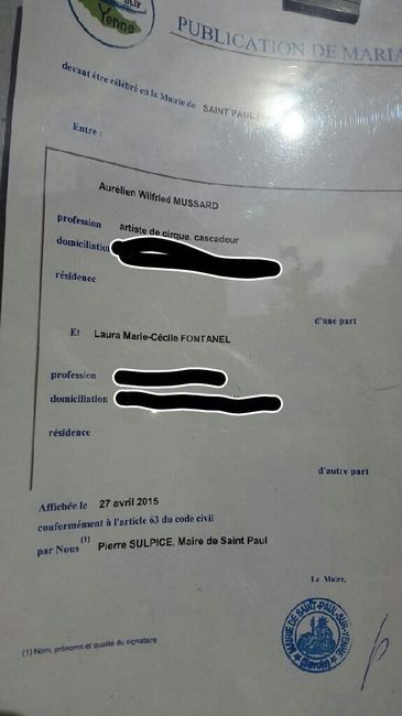 Coucou les filles ! En rentrant du travail je suis passée à la mairie pour changer leur de mon rendez vous samedi avec le maire vu que c'est mon Evjf et que mes copines membarquent à 10h ! Et je suis tombée sur la publication des bancs ! Les larmes...