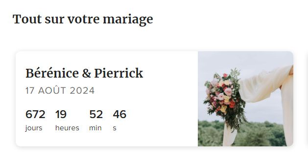 Bonjour tout le monde !! Tic-tac, ton grand jour n'est plus très loin ! Prêt(e)s à célébrer cette journée si spéciale ?💍 Tu dois certainement compter les jours et Mariages.net a trouvé le meilleur outil pour que tu ne l'oublies pas. Le compte à...