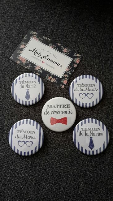 Voici les badges que nous avons commandés sur le site "mots d'amour" pour nos témoins et notre maître de cérémonie Hâte de leur offrir Vous leur avez offert quelques choses ?!