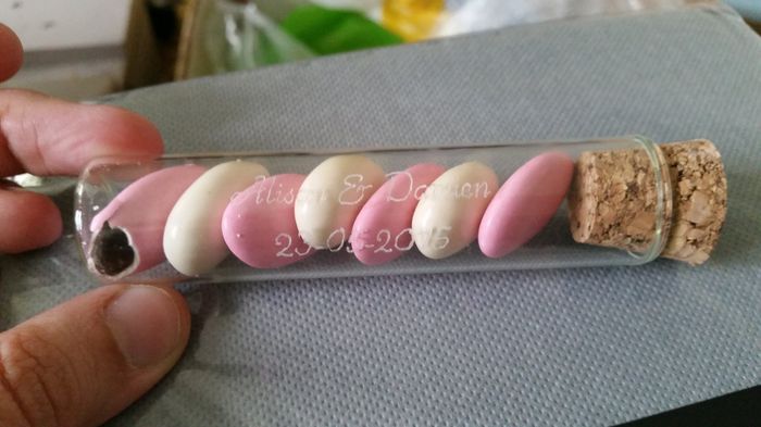 Hello les filles, je M adresse à vous aujourd'hui car je suis en manque de inspiration. Pour offrir nos dragées à nos invités, nous avons adorés l idée des tubes à essai en verre. Ayant vu une grosse promo je me suis empressée de les acheter, mais...