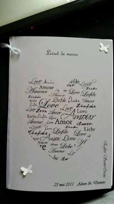 Voici mon livret de messe. J'ai encore quelques détails à régler. Petite question: il faut en faire un par personne ou par couplé ou autre? bon week end