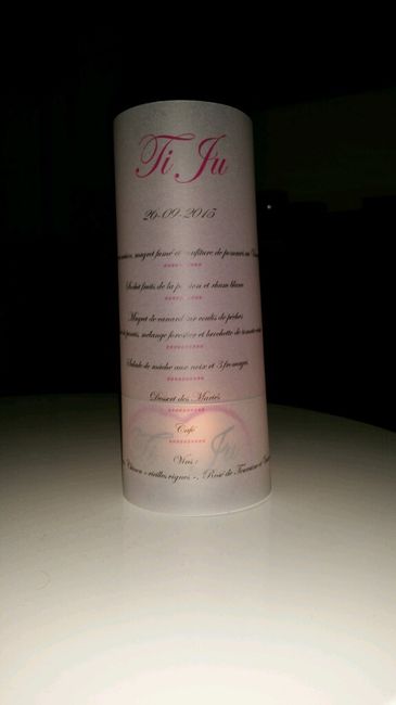 Salut les filles! Voila mes menus pour le mariage... Pour qu'ils gardent bien la forme ronde je veux mettre de grosse bougies qui sont déja dans des verres (style ikea). Mais je ne touve que des bougies parfumées et vu qu'il y aura 4 ou 5 menus par...
