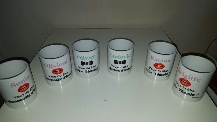 Nous avons reuni tous ce petit monde pour faire notre demande avec des mugs personnalisés .... Nous leurs avons donner chacun une boîte emballé de papier cadeau qui contenait le mug et une enveloppe avec un SAVE THE DATE magnet Nous leur avons...