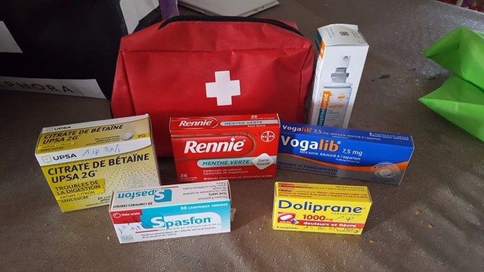 Bonjour bonjour et voila reste peu de temps avant le mariage alors on s'attaque aux détails... j'ai tout simplement demandé a ma pharmacienne de me faire "un kit de survie" pour la soirée de mariage. Pansement, crème pour les coups, désinfectant,...