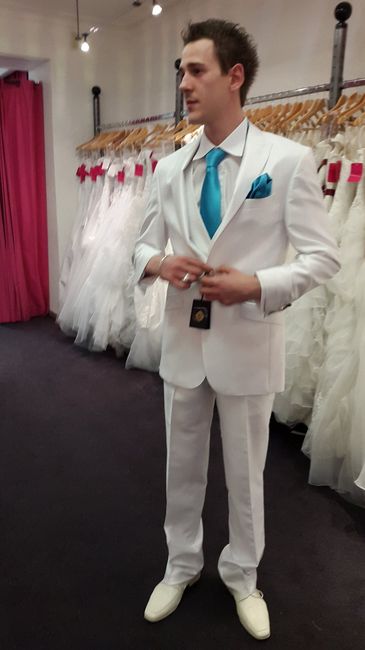 costume de mon bébé d'amour quand pensez vous ? Il est magnifique les chaussures sont pas assortie car y avait que sa pour l'essaie ces chaussures blanche sont pas encore arrivé..