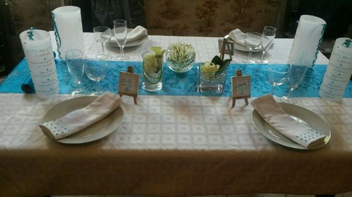 Coucou tous le monde et oui ces encore moi !! Ces pour vous montrez ma table teste le jour j sa sera des tables rondes hélas chez moi j'ai que table rectangulaire du coup sa donne sans doute pas pareil.. Avec teste centre de table et bouquet !! Quand...