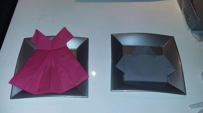 Coucou les filles, besoin de vos avis, je suis en plein dans les pliages de serviettes, insomnie quand tu nous tiens!!! Je suis parti sur 2 pliages différents, un en forme de robe que j'ai terminé, super contente! Et le 2 ème je voulais faire en...