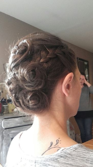 Salut mes beauté(e)s Ça y es, le troisième essai fut le bon .........j'ai enfin trouvé la coiffure de mes rêves pour le mariage. Et le plus c'est que chéri adore : JE SUIS TROP TROP TROP HEUREUSE! !!!!!!!! Voilà les photos