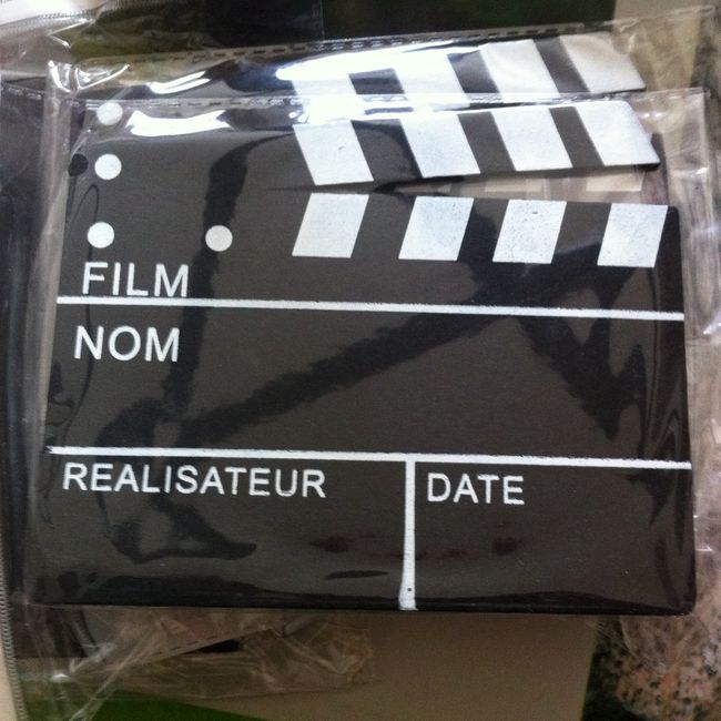 Bonjour tout le monde!!J'ai reçu un colis tout à l'heure, il est rempli de déci pour notre mariage :-) On a reçu les tentures les claps de cinéma les boîtes à dragées et pleins d'autres trucs encore :-) Maintenant plus qu'à attendre l'année prochaine...