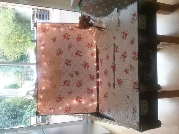 Et voilà, après plusieurs heures passées dessus...Le fond a été remplacé par du tissu, des napperons car notre thème est rétro dentelle. Il manque sur le napperon du haut notre "merci" mais il nous n'avons que 4 lettres sur 5 ^^Les fleurs sont dessus...