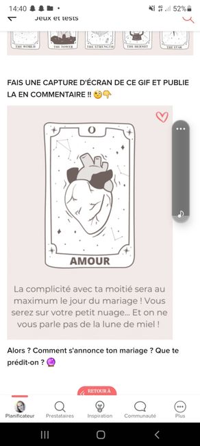 Coucou tout le monde 💜 Merci d'avoir participé jusqu'au bout ! Maintenant qu'on en sait un peu plus sur ton mariage, on va pouvoir tirer les cartes... FAIS UNE CAPTURE D'ÉCRAN DE CE GIF ET PUBLIE LA EN COMMENTAIRE !! 🧐👇 Alors ? Comment s'annonce ton...