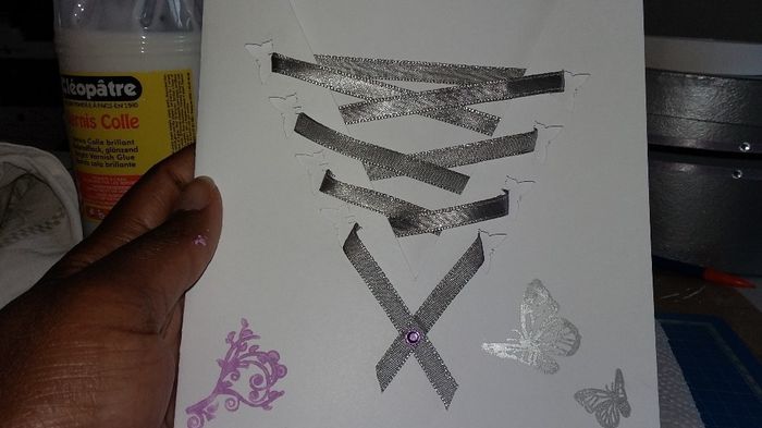 salut les girls !!! voici après avoir adapter à mon thème et bien des recherches sur le net, l'avancée de nos faire part ! qu'en pensez vous ? il manque juste les carte à glisser à venir