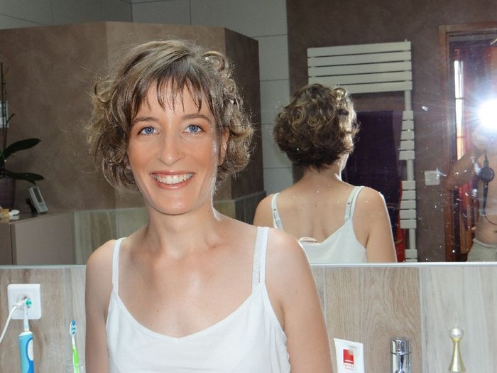 Bonjour Le thème du mariage est orange, argent. Je sors de mes essayage coiffure et maquillage (avec la chaleur, ça brille). Qu'en pensez-vous sincèrement? J'ai les cheveux courts donc un peu galère mais, j'ai essayé de faire lisse et "bouclé" sur...