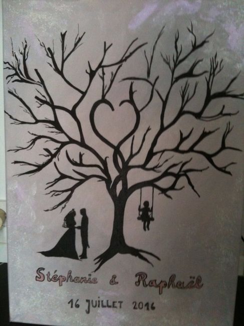 Coucou les brides, Voici mon arbre à empreintes faites par une amie décoratrice, il est trop beau, le petit sur la balançoire c'est notre loulou on voulais le représenter dessus aussi ! arbre à empreinte