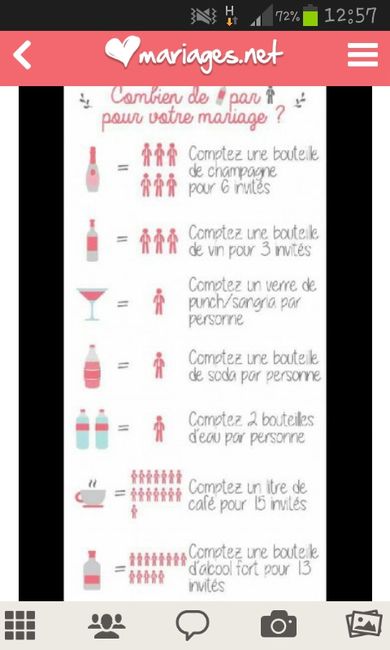 Bonjour tt le monde je m explique au repas j aurais 60 invite 67 au vin d honneur et le lendemain on sera 40 Je ne sais pas combien prevoir en eau coca ice tea biere vin champagne avez vous une idee ? Et vous achete tt sa cb de tmps avant le mariage...