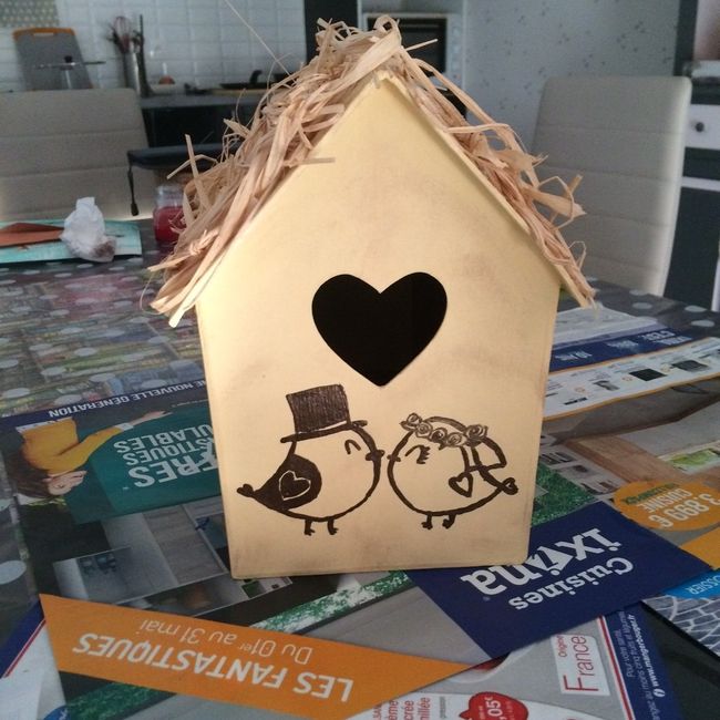 Hello! Voici mon urne Qu'en pensez-vous ? Faut-il que je rajoute du raffiat ou mettre des inscriptions sur les côtés? Je ne veux pas qu'elle soit trop chargée. Merci à vous! Jessie.