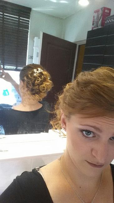bonjour, je ne poste pas beaucoup mais j'ai besoin de votre aide! j'ai fait mon essai coiffure. Perso j'aime bien sauf le devant qui sera moins plaqué. je doute un peu (forcément le mariage approchant...) qu'en pensez-vous? ma robe a des larges...