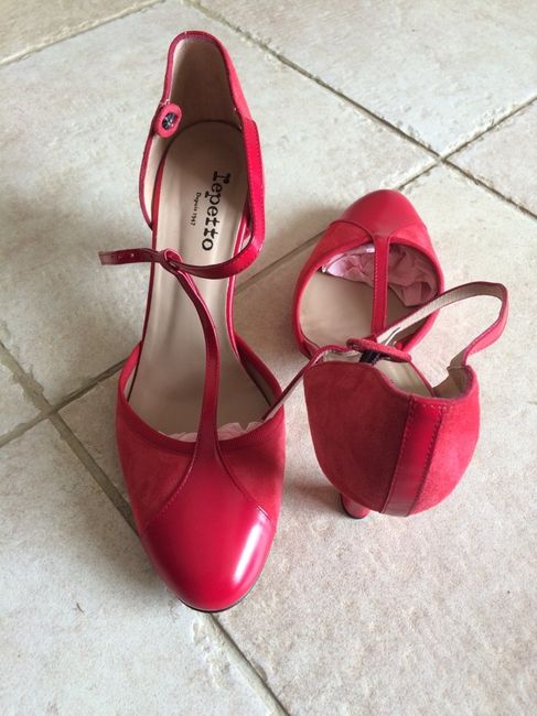 Coucou les filles, Voilà mes chaussures, des salomés rouges feu je voulais les flammes toutes vernis mais il n'y en avais plus et encore moins à ma taille ... 41..Difficile cette annee de trouver des chaussures rouges confortables sans trop de talon...