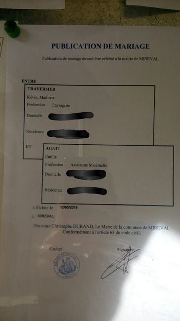 Voilà voilà les banc on été publié se matin!!!fou sur fait tout drôle. C'est qu'un simple bout de papier mais sa rend le mariage officiel!!!En plus de cela se matin je suis allé testé la musique à l'eglise avec une de mes temoin et comment dire.......