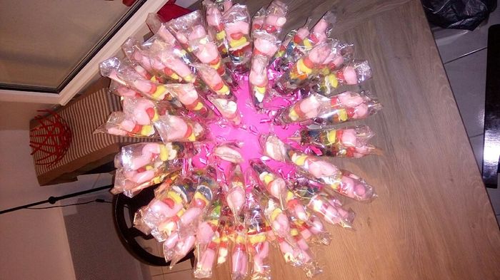 Avec chéri on vient de terminer notre arbre à bonbon qui sera le centre de table de la table des enfants!!!! J- 5 oulalaaaaa que sa passe vite