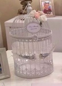 Ce soir c'est atelier table urne + livre d'or : c'est exactement ce que je voulais !! Il faut juste imaginer de vraies fleurs sur la cage à oiseaux, une pyramide de roses sur le support à gâteaux blanc, les boîtes à dragées sur le support à gâteaux...