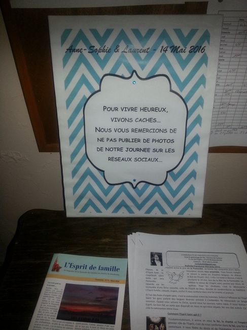 Help les Brides, Nous avons décidé de dire NON aux réseaux sociaux lors du mariage. Je cherche un moyen de le dire, aux proches directement, mais à la famille éloigné c'est plus compliqué... Je pense à des petites affiches à la mairie et à l'eglise,...