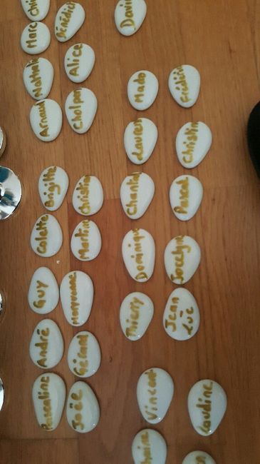 Coucou J'avance, j'avance tout sera prêt pour vendredi Mes marques places en photo. C'est galère car les cailloux sont pas tres long (ils mettent que des courts grrr et que j'ai des longs prénoms dans mes invités) à choisir je n'aurai pas choisi...