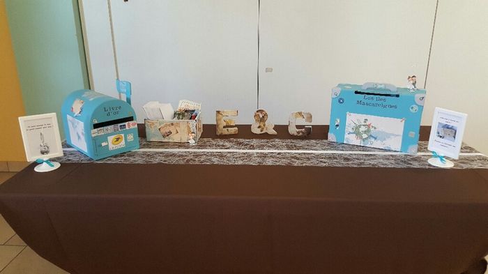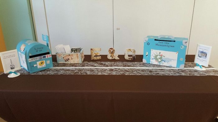 Coucou la communauté, Dimanche productif, je vou montre mes diy (mon thème le voyage et mes couleurs turquoise, chocolat et blanc) : Hommes : mignonettes de Porto pour rappeler mes origines Femmes : globe avec des dragées au chocolats avec nos...