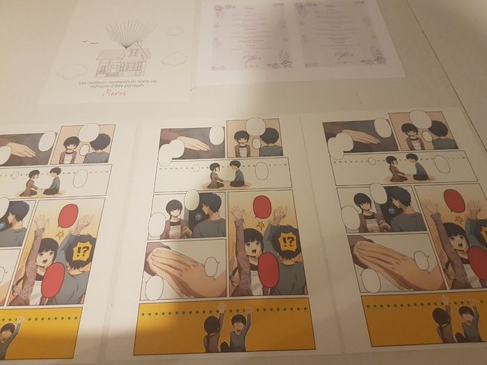 Voilà nos petits DIY: urne lego, boîtes dvd avec jaquettes personnalisées et menus pour les tables et les planches de BD à compléter.
