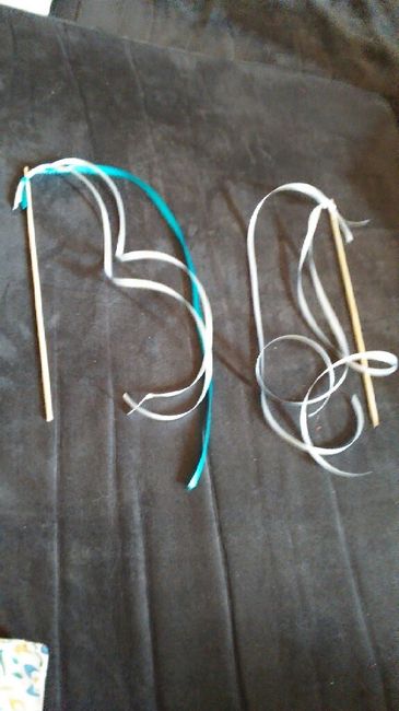 Aujourd'hui en regardant le match de la France sans chéri qui n'est pas encore rentré de son week-end voilà mon petit test : des rubans sur baguette. J'ai appris par ma coiffeuse que le lancer de pétales et de confettis est interdit dans ma ville, ce...