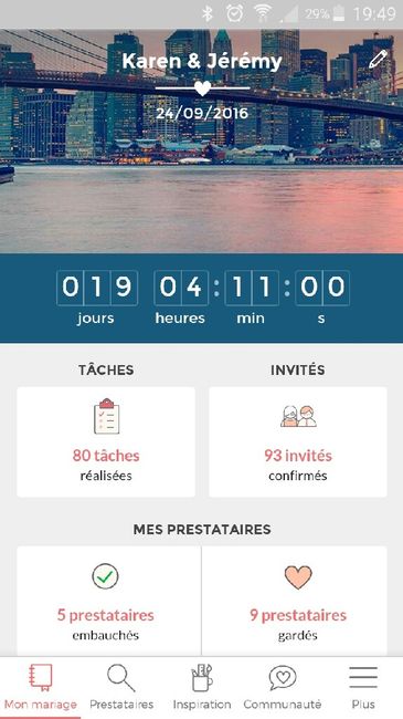 Ça y ai plus que 19 jours et le stress est bien là je pensais avoir tout fait mais finalement je me rend compte qu'il manque encore beaucoup à faire et sa me fait stressé à fond! De plus cheri est encore plus stressé que moi. Enfin il nous reste...