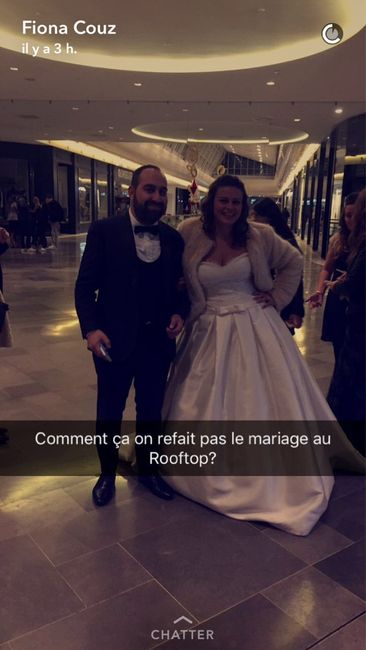 Durant la soirée de notre mariage jeudi, notre DJ (qui mixe dans les soirées marseillaises): venir en tenue de mariés avec nos invités pour refaire le mariage...Challenge accepté!