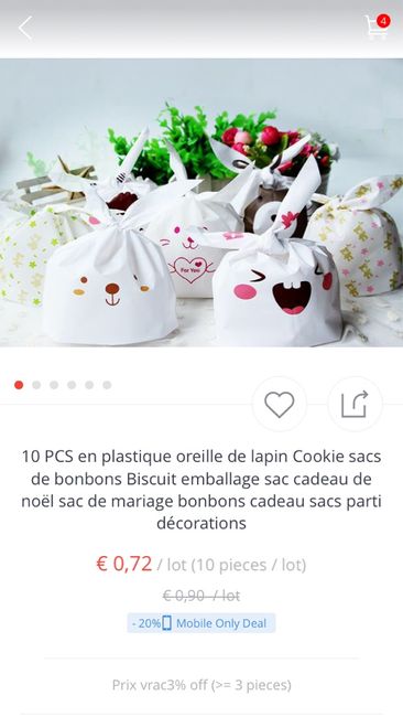 Hello les filles, je partage avec vous ma petite satisfaction, J ai reçu les sachets pour mettre les bonbons pour les enfants. C est tout mignon et surtout un prix imbattable! Alors foncez !!