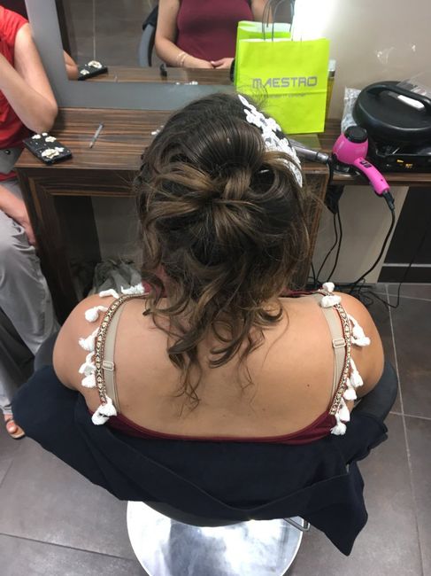 Malgré un gros soucis de perte de cheveux, ma coiffeuse vas réussir à faire des miracles le jour J! voici mon essais à peine fixer pour que je puisse voir ce que cela donne mais sans abîmer encore plus les cheveux