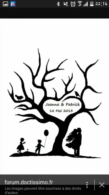 Voici l'arbre a emprintes que j'adore ca ira trop bien avec notre journée car mariage et baptême de notre fille seront regroupés ce soir la. Il me reste à voir si je fait sur un format A4 ou A3. Pour environ ̂ 70 personnes un A4 doit suffire non...