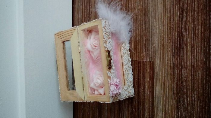 La boîte à alliance et nos lettres (pour mettre près de l'urne et livre d'or) sont customisés ! Vos avis ?