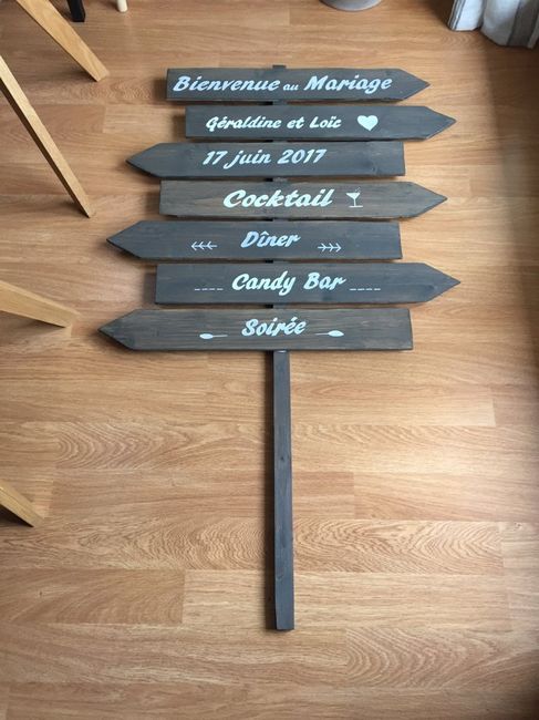 Ce soir j'ai réalisé mon panneau directionnel pour notre mariage. Et je dois dire que je suis plutôt fière de moi. Mon futur adore... donc c'est le principale.