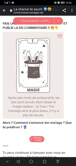 Coucou tout le monde 💜 Merci d'avoir participé jusqu'au bout ! Maintenant qu'on en sait un peu plus sur ton mariage, on va pouvoir tirer les cartes... FAIS UNE CAPTURE D'ÉCRAN DE CE GIF ET PUBLIE LA EN COMMENTAIRE !! 🧐👇 Alors ? Comment s'annonce ton...