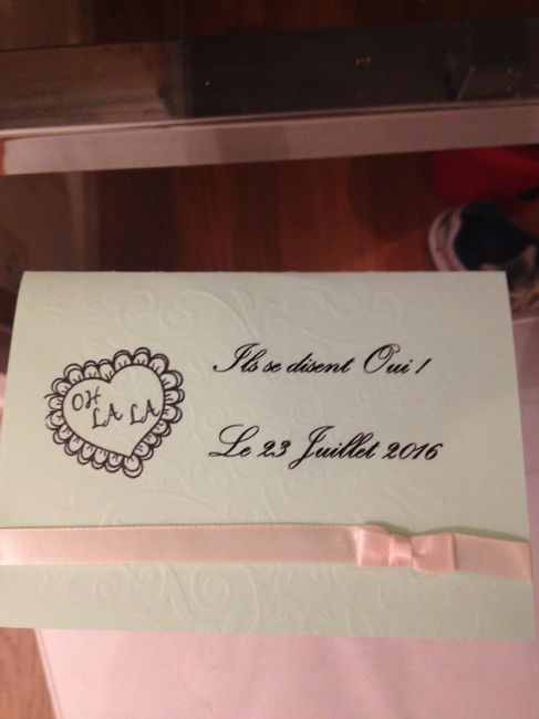 Coucou les brides. La semaine dernière nous avons terminé nos faire- parts avec chéri. Mardi j'ai donc donné notre faire-parts à mes parents et à mon frère. Ils nous ont fait plein de compliments ( même si mon père a quand même réussi à faire une...