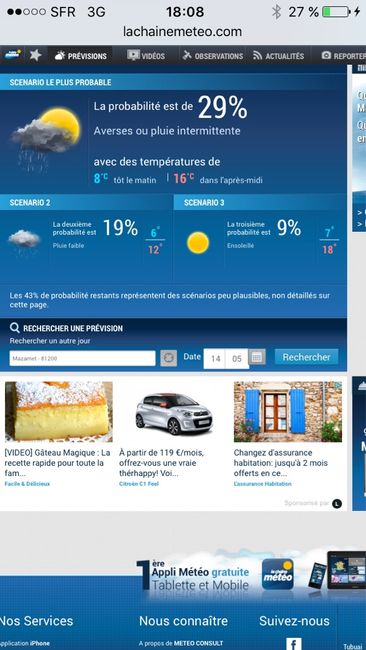 Coucou les filles. J'ai découvert qu'il était possible de consulter les probalitités météorologiques 365 jours à l'avance. http://www.lachainemeteo.com/previsions-meteo-a-365-jours.php On est bien d'accord pour dire qu'il y a 100% de chance...