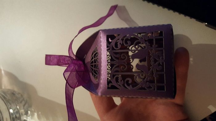 Hello les brides!! Ca fait plaisir d'ouvrir sa boite aux ettres et trouver un colis pour le mariage plutôt que des factures lol Pour rappel je n'ai pas de thème, juste des couleurs (violet, ivoire et touches de doré) et quelques oiseaux par ci par...