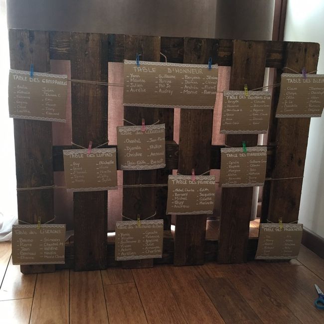 Après les centres de table on a fait le menu En peignant une toile avec de la peinture noir pour pouvoir écrire avec un stylo craie après dessus