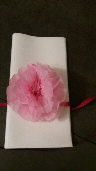 Coucou tout le monde, j'espère que vous allez bien. Je vous sollicite pour avoir votre avis sur le tour de serviette que je suis en train de faire . Je compte faire des fleurs en papier crepon que je vais attacher au tour de la serviette a l'aide...