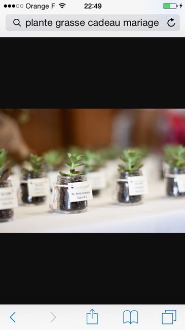 Bonjour, Notre thème est nature , blanc vert et marron clair. Nous aurions voulut offrir à nos invités à la place des traditionnels dragées des petites plantes grasses... Nous aurions voulut les faire pousser nous même au lieu de les acheter déjà...