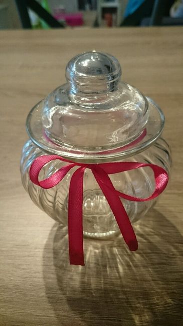 coucou les filles, hier petit tour chez action et j'ai trouvé mes petits pots pour y mettre nos bonbons en cadeau invité. Ca sera sans doute des dragibus! je rajouterai un petit sticker ardoise et un petit line dentelle ou autre petit pot cadeau...