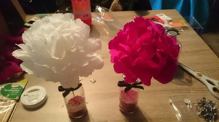 Hello les filles hier en allant à la mairie sur le bureau d'une dame il y avait des fleurs en papier crépon. On a littéralement craquer dessus, du coup cette après-midi direction les magasins pour acheter tous ce qu'il faut. Et voilà le résultat. ...