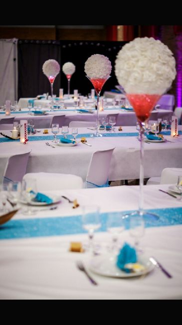 Coucou tout le monde J'avais prévu et fais des testés pour des centres de table ronde. Mais après avoir vu la salle et les tables c'est panique elles sont rectangulaires!!!! J'ai fais ma deco déçu pour voir le rendu. Ba on va pas se mentir c'est Très...
