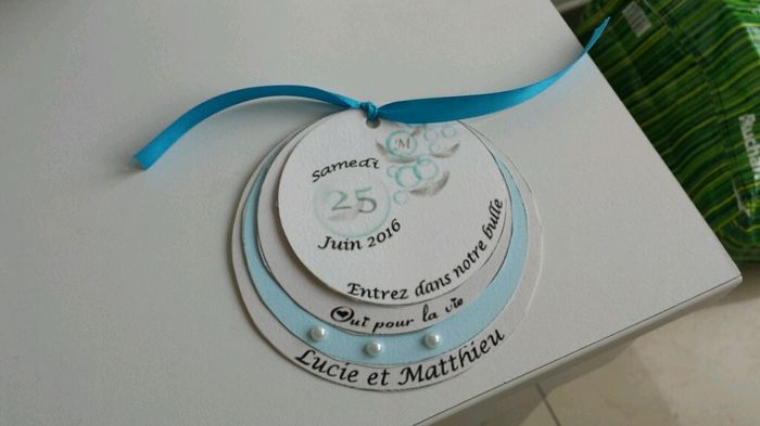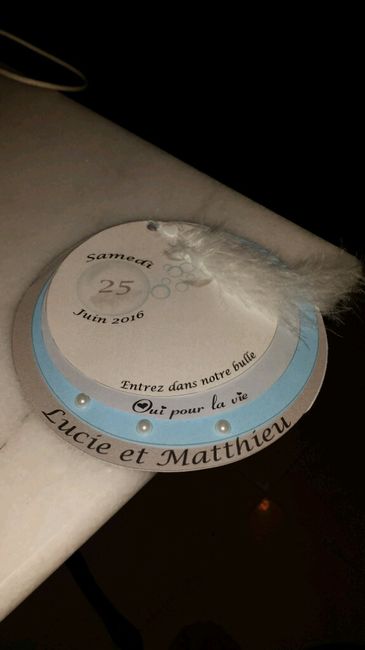 Bonjour à tous(tes) ! Voici nos faire part finaux (ne prenez pas en compte le gros trous lol) et les cercles les traits apparement ne le seront pas. Qu'en pensez-vous ? Notre thème ange bulle et plume Bonne journée !